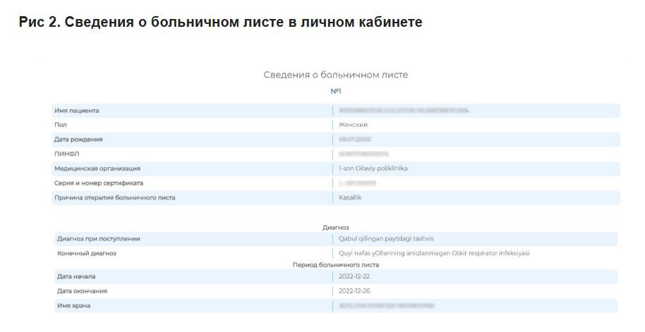 Электронный больничный лист поступает работнику в личный кабинет на портале my.gov.uz. Проверить его можно через сервис «Сведения о больничном листе».
