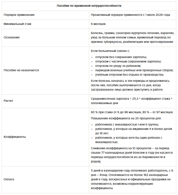- с 1 июля 2026 года – для пособий по временной нетрудоспособности;