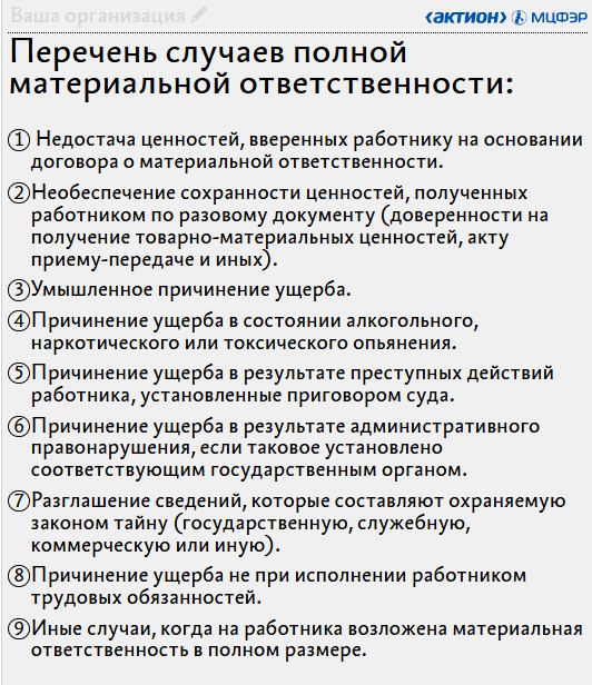 Когда можно возложить полную материальную ответственность