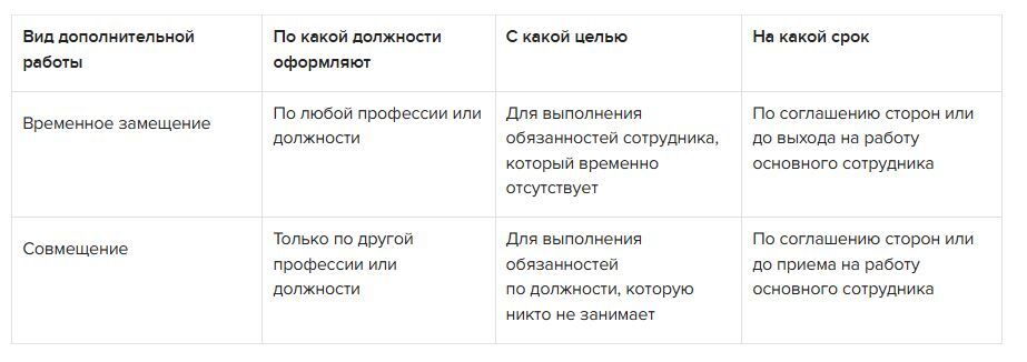 У совмещения и временного замещения два отличия: