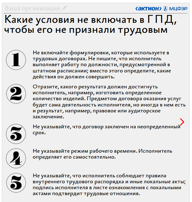 Памятка. Какие условия не включать в договор ГПХ, чтобы его не признали трудовым