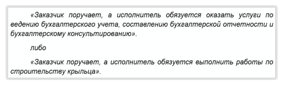 В разделе «Предмет договора» сформулируйте, какие именно исполнитель будет выполнять работы или оказывать услуги. Указывайте не профессию, а результат, который заказчик получит после того, как исполнитель выполнит все работы или окажет услуги.