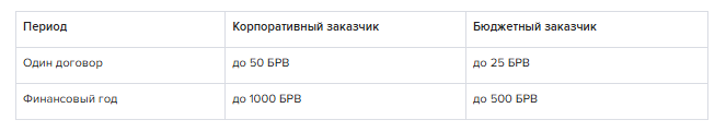 Упрощенная закупка проводится на небольшую стоимость в зависимости от роли заказчика, в рамках одного договора и периода закупки. Подробнее смотрите в таблице.