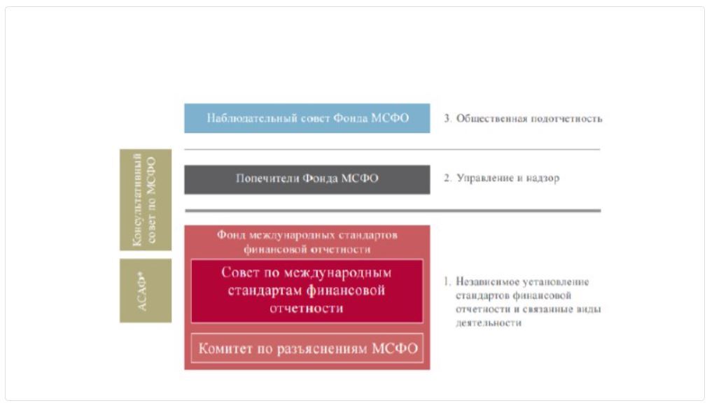 Порядок разработки, утверждения и решения спорных вопросов регулирует Фонд МСФО, структура которого представлена ниже: