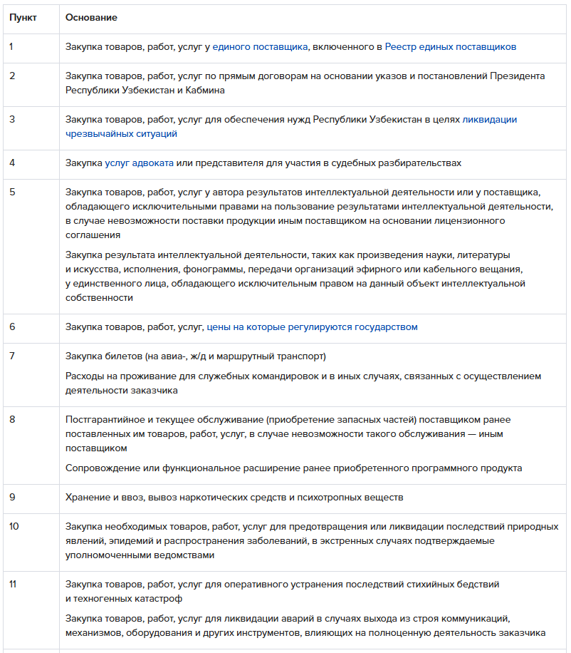 Таблица. Основания для закупки по прямому договору согласно части 1 статьи 71 Закона о госзакупках