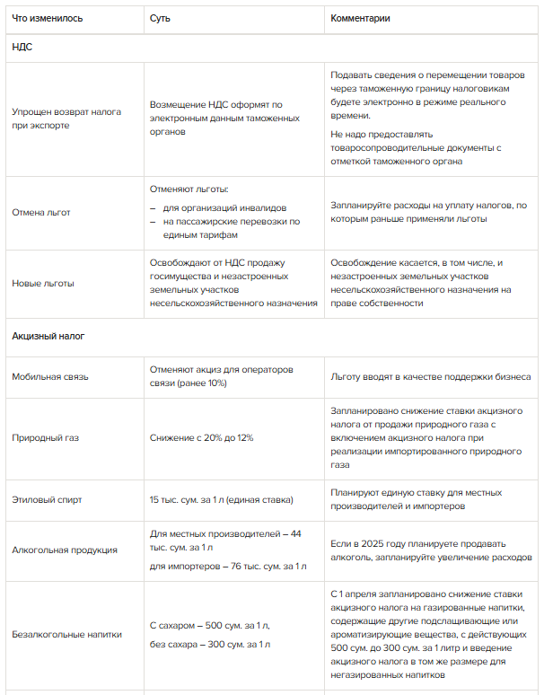 Таблица. Основные планируемые изменения в налогах в 2025 году