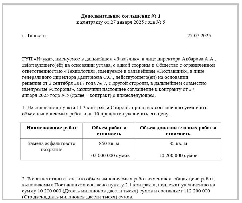 Фрагмент дополнительного соглашения к договору