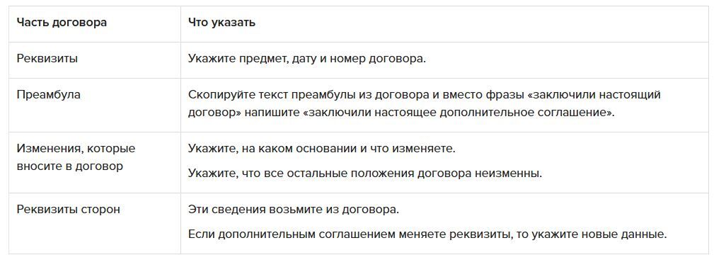 Таблица. Как составить дополнительное соглашение к договору