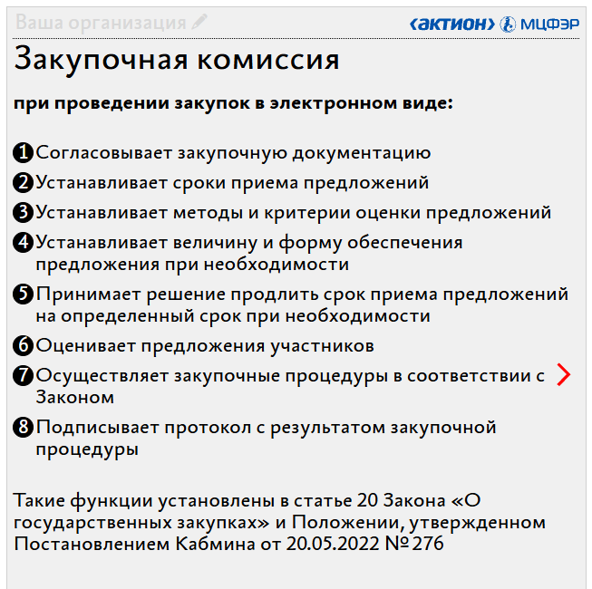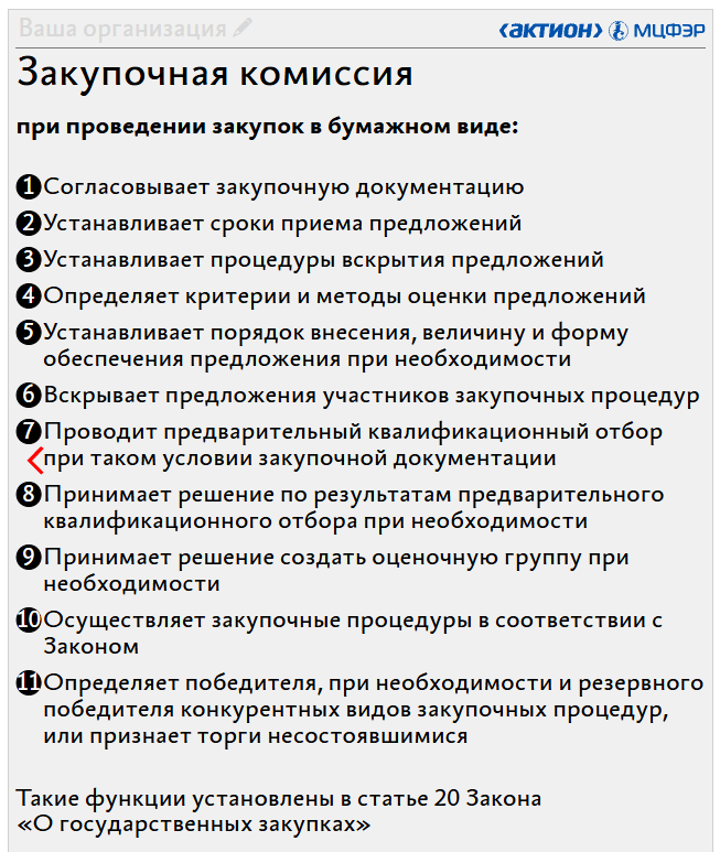 Памятка. Функции закупочной комиссии