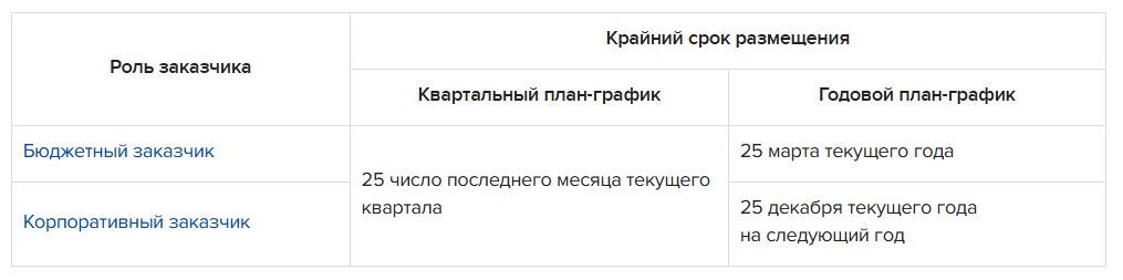 Таблица. Крайний срок размещения плана-графика на СИП