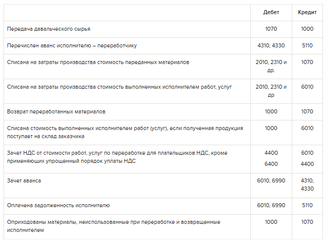 Заказчик в отражает бухучете передачу материалов в переработку проводками: